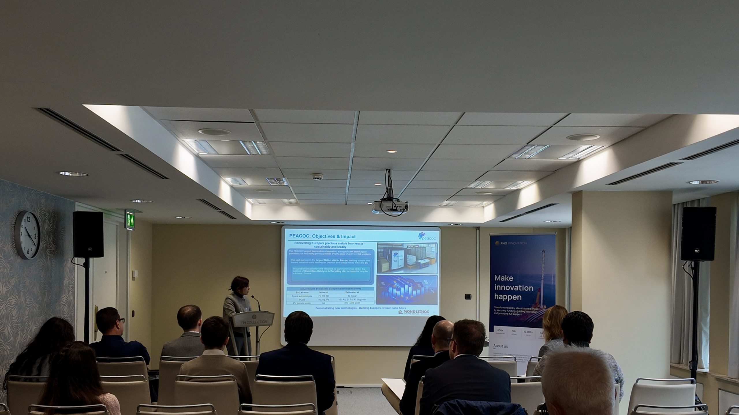 PEACOC, co-presented by Elisabet Andres Garcia (TECNALIA) and Anastasia Maria Moschovi (MONOLITHOS), showcased its three pilot units recovering platinum, palladium, rhodium and other precious metals from end-of-life autocatalysts, photovoltaic panels and electronics. The PEACOC pilots have recently run successful tests on automotive catalysts, achieving over 90% metal recovery rates. Researchers at MONOLITHOS are currently contemplating the possibility to extend the process to other streams, such as lithium-ion batteries and fuel cells.